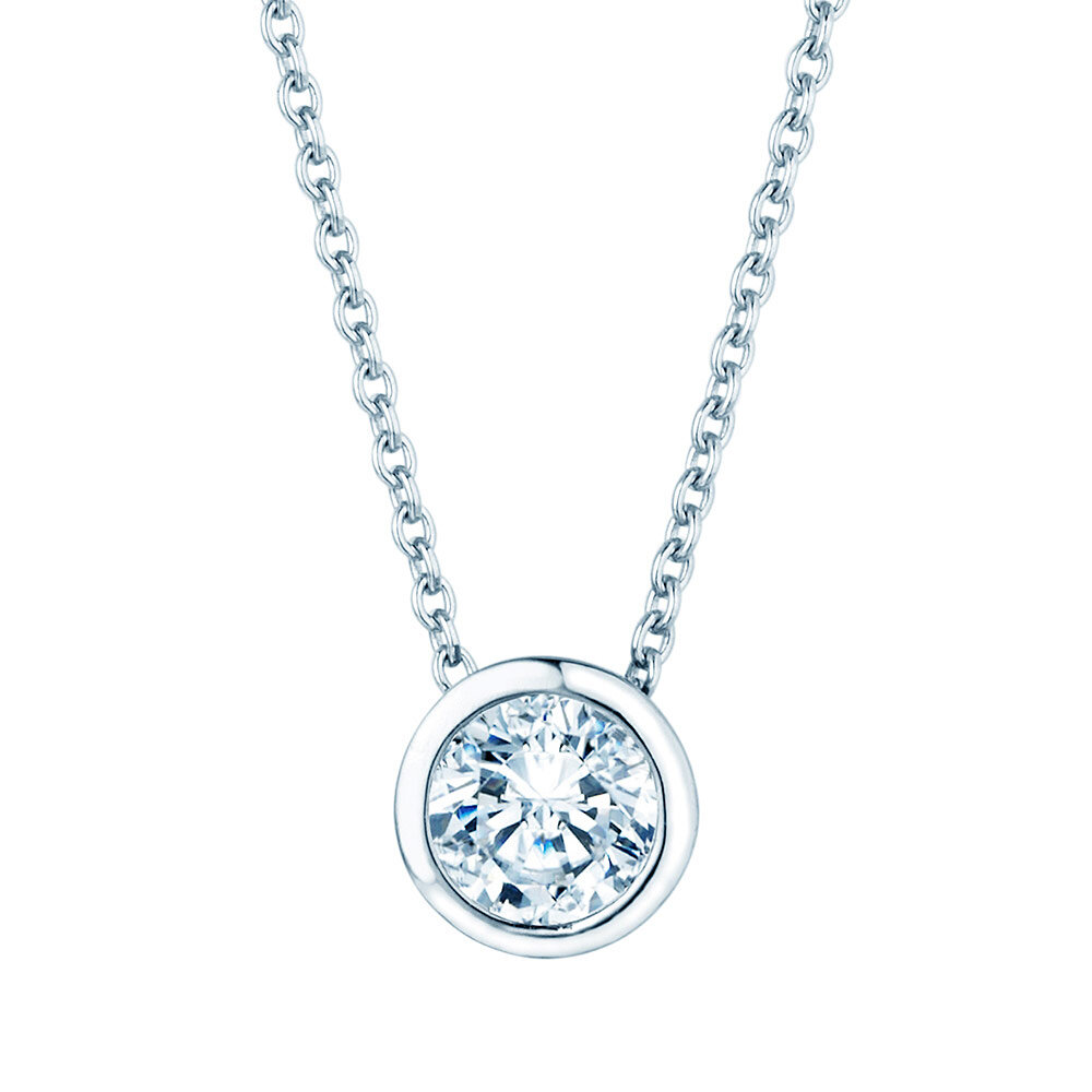 Ein Klassiker, der Anhänger Eternal mit einer Zargenfassung. Der Anhänger ist zeitlos und eignet sich als ideales Geschenk. Wählen Sie zwischen 18k Gold und Platin und einer Diamantgröße zwischen 0,15-1,00 Karat.