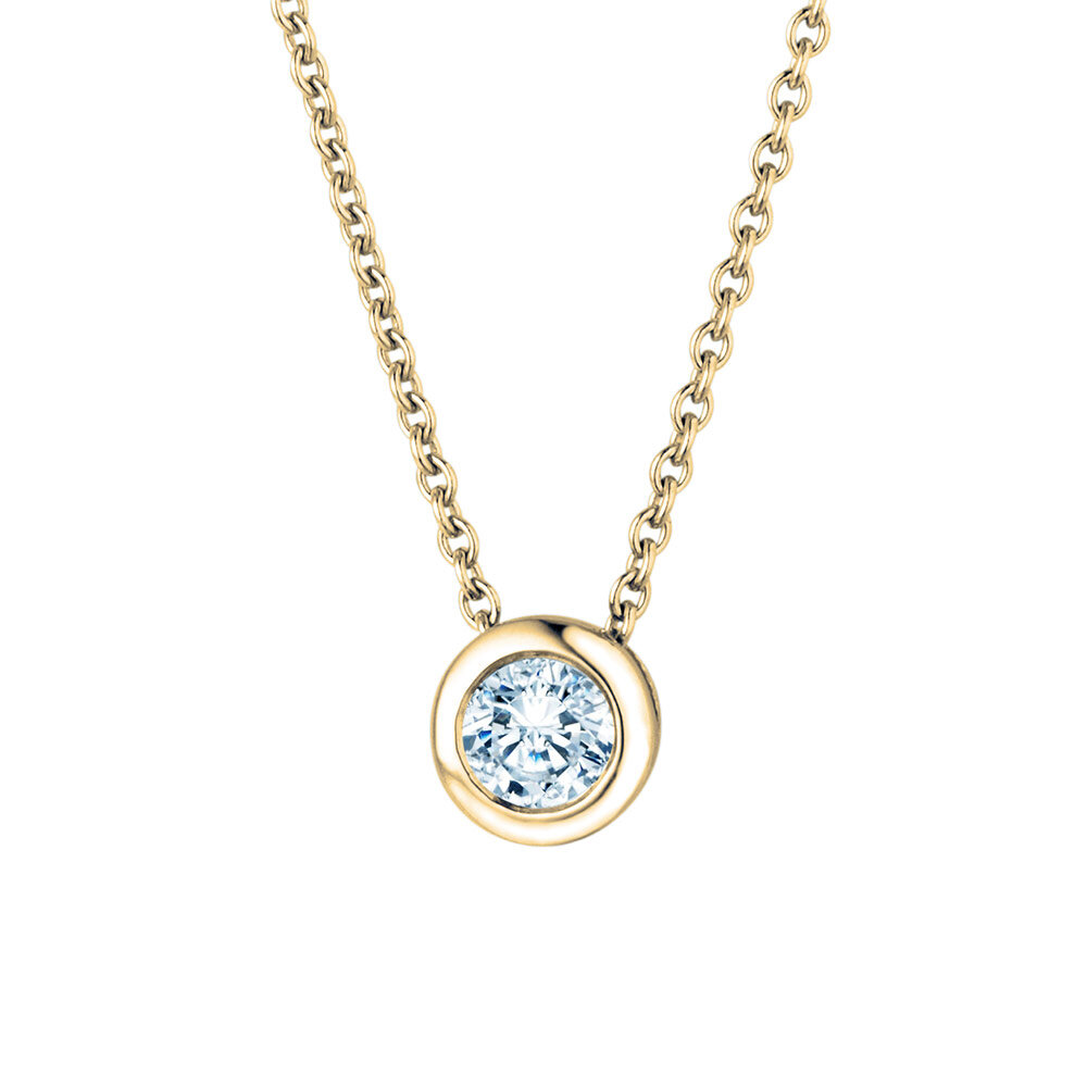 Ein Klassiker, der Anhänger Eternal mit einer Zargenfassung. Der Anhänger ist zeitlos und eignet sich als ideales Geschenk. Wählen Sie zwischen 18k Gold und Platin und einer Diamantgröße zwischen 0,15-1,00 Karat.