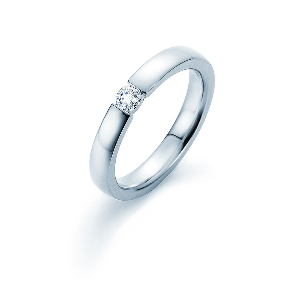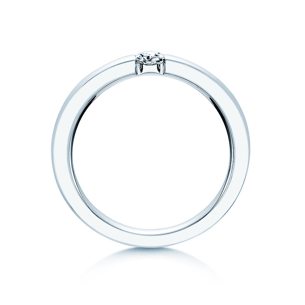 Der Labordiamant ist in unserem Modell Infinity sicher in die Ringschiene eingespannt. Das helle Silber wirkt modern und lässt den Edelstein erstrahlen. Auch aus edlem Weißgold ist der Spannring Infinity ein Blickfang.