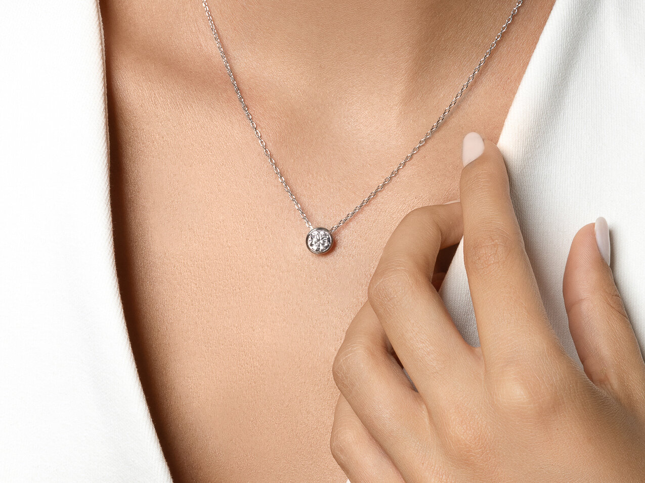 Ein Klassiker, der Anhänger Eternal mit einer Zargenfassung. Der Anhänger ist zeitlos und eignet sich als ideales Geschenk. Wählen Sie zwischen 18k Gold und Platin und einer Diamantgröße zwischen 0,15-1,00 Karat.