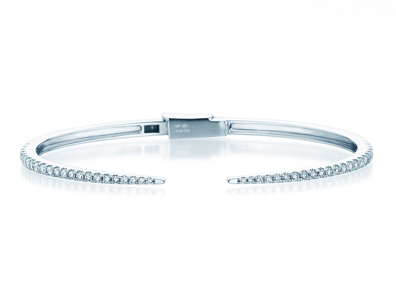 Die mit Diamanten besetzte Armspange Peak verjüngt sich zu der offenen Mitte hin. An den Enden ist der stilvolle Armschmuck mit Diamanten besetzt.