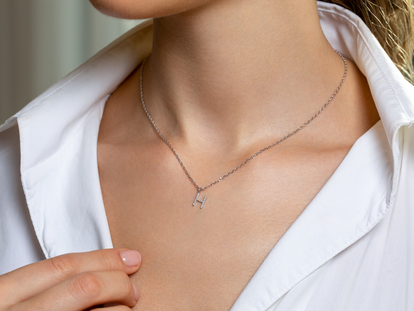 Von Hand mit Diamanten besetzt, beeindrucken diese filigran gearbeiteten Buchstaben durch ihre klassisch-schlichte Form.