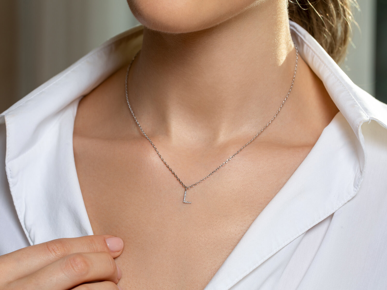 Von Hand mit Diamanten besetzt, beeindrucken diese filigran gearbeiteten Buchstaben durch ihre klassisch-schlichte Form.