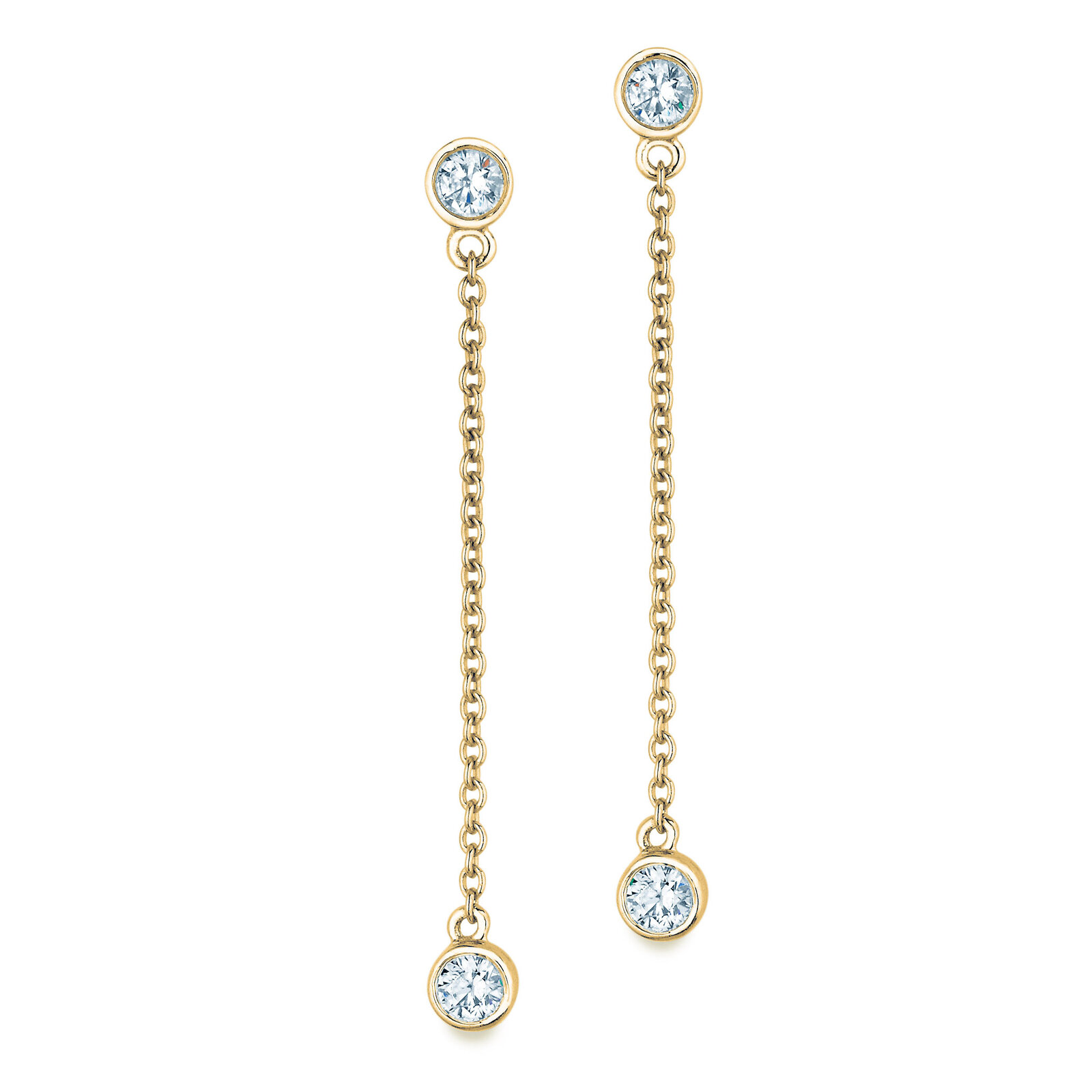 Zur Auswahl stehen Ohrringpaare mit zwei oder drei Diamanten. Beide Varianten sind in fünf Diamantgrößen aus Weißgold, Gelbgold oder Roségold erhältlich.