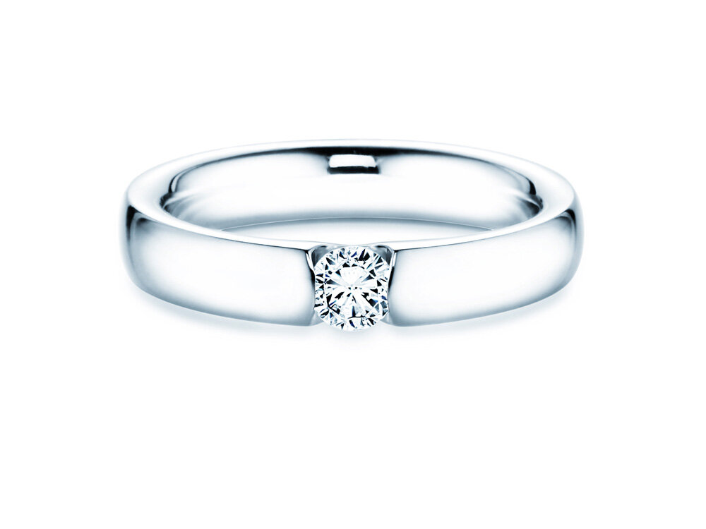 Der moderne Fassungstyp des Spannrings Destiny mit Diamant hat zwei besondere Vorteile: Der intensiv leuchtende Diamant wird sicher gehalten und durch die großzügig geöffneten Seiten fällt reichlich Licht. So kann der Diamant seine besondere Leuchtkraft voll entfalten. Die ausgewogene und klare Linienführung der Ringschiene rundet das Design elegant ab.