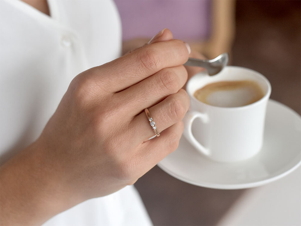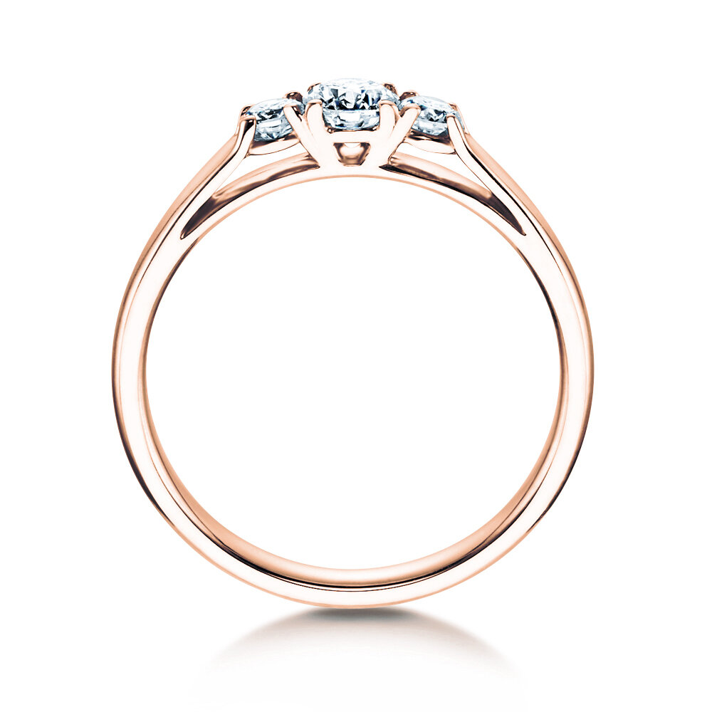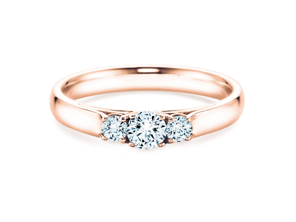 Das Modell 3 Stones präsentiert drei funkelnd leuchtende Diamanten eingebettet in modernem und innovativem Ringdesign. Dieses Design vereint zwei entscheidende Vorteile: 1. Die Diamanten sind offen gefasst und entfalten so ein besonders intensives Leuchten, 2. die sich direkt aus der Ringschiene entwickelnden äußeren Elemente der Fassung schützen die Diamanten und geben ihnen sicheren Halt. Die drei Diamanten symbolisieren drei Zeitebenen – vergangene, jetzige und zukünftige Liebe – und verbinden sich so im Modell 3 Stones zu einem ausdrucksstarken und romantischen Liebesbeweis.