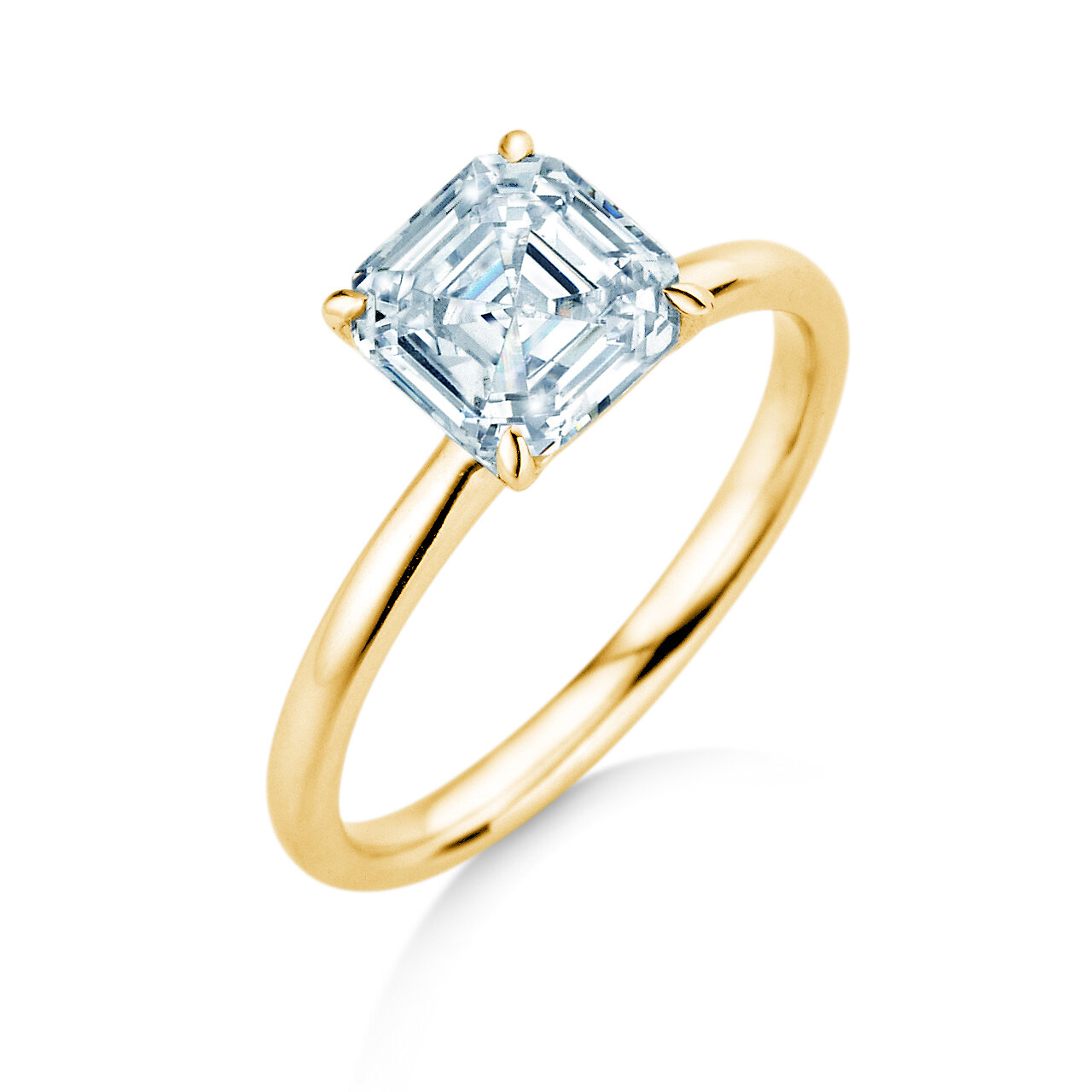 Klar geschnittene Formen und funkelnde Facetten zeichnen einen Asscher-Cut-Diamanten aus.
