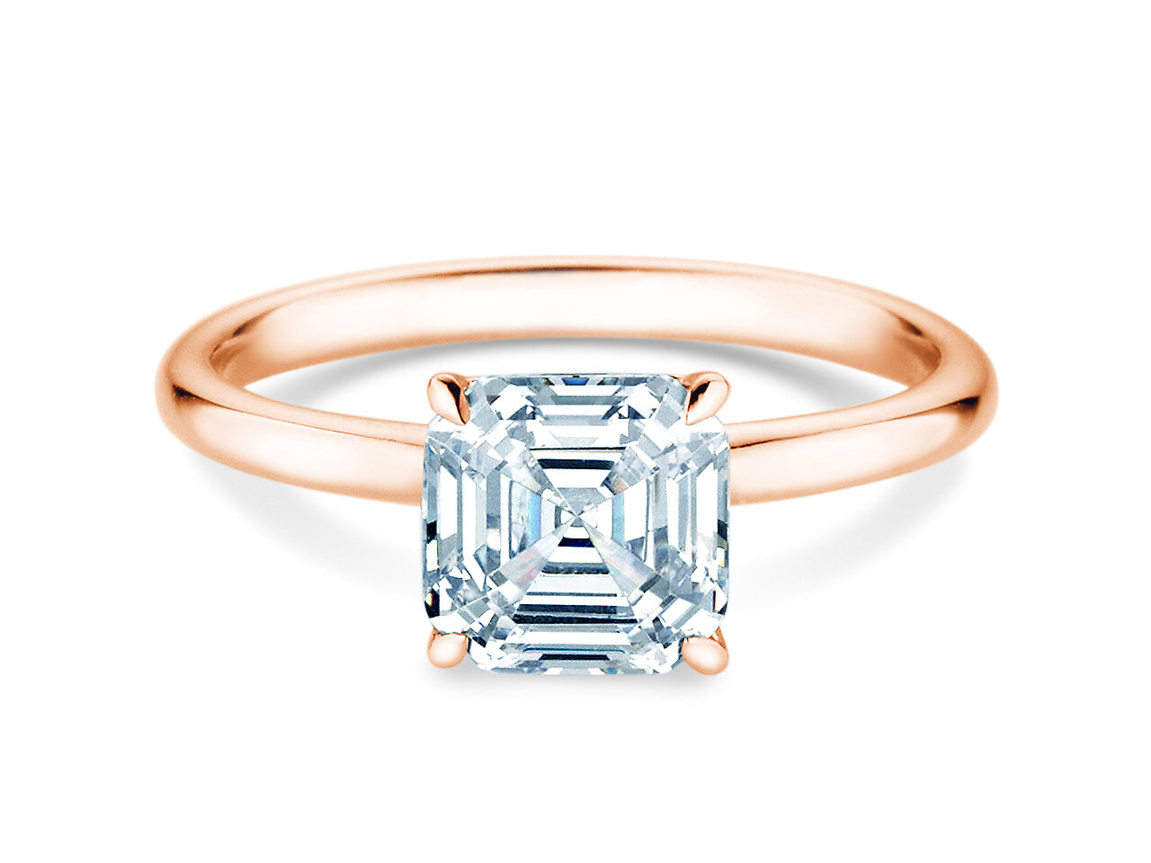 Klar geschnittene Formen und funkelnde Facetten zeichnen einen Asscher-Cut-Diamanten aus.