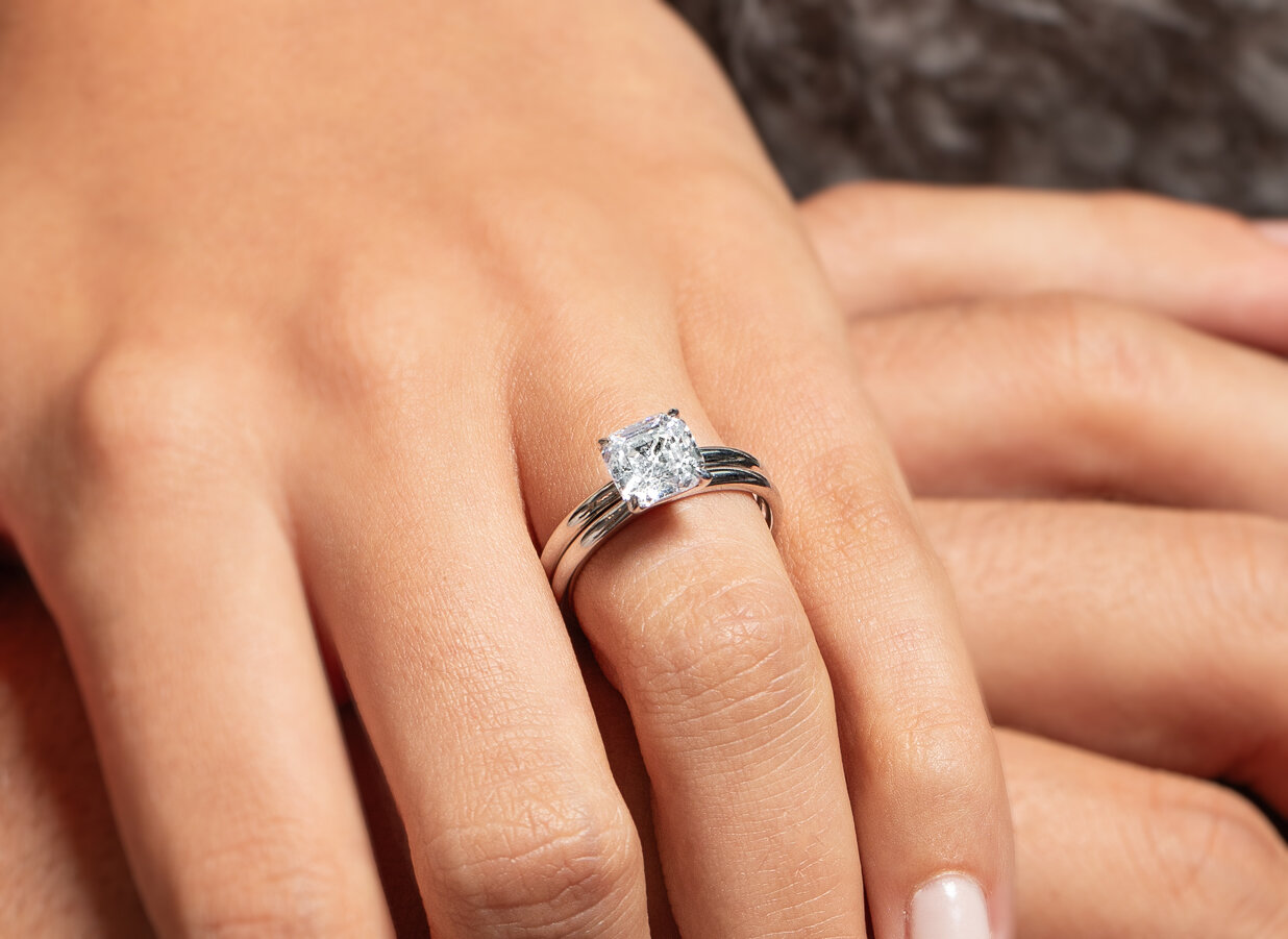 Klar geschnittene Formen und funkelnde Facetten zeichnen einen Asscher-Cut-Diamanten aus.