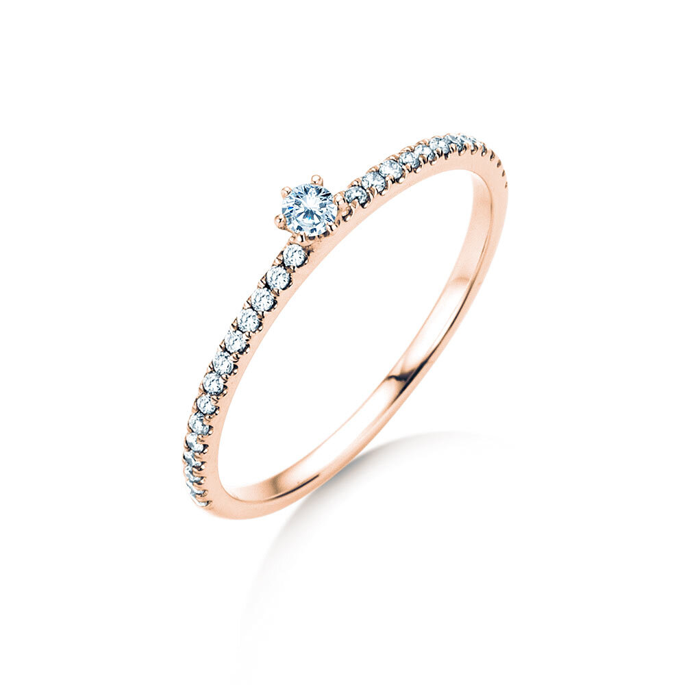Diamantring Classic Pavé mit echten Diamanten: Hauptstein mit Krappenfassung und Seitensteine als Pavé. Die diamantenbesetzte Fassung entlang der Ringschiene, Pavé genannt, verleiht dem Diamantring Classic Pavé seinen edlen Look.