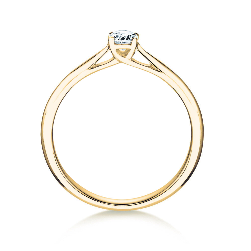 Eine kunstvoll gestaltete Fassung hebt den Diamanten elegant über die schlicht gearbeitete Ringschiene hinaus. So wird das Maximum des einfallenden Lichts reflektiert und der Diamant kann sein magisches Funkeln optimal entfalten. Der Auftritt dieses Rings ist angenehm zurückhaltend und zugleich stilvoll und trendy.