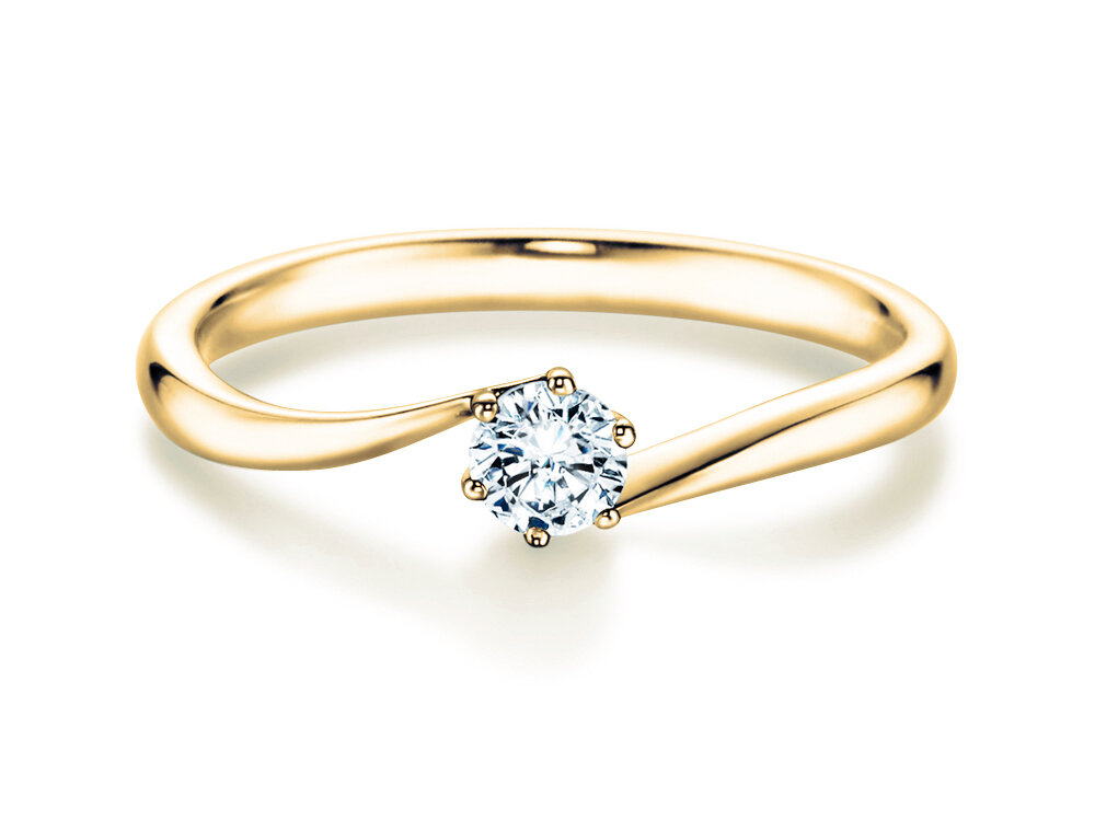 Sanft liebkost die Ringschiene des Diamantrings Devotion den edlen Diamanten. Die leichte Drehung verleiht diesem Solitärring eine künstlerische Anmutung. Einzigartiges Design, das in kräftigem Gelbgold erstrahlt.