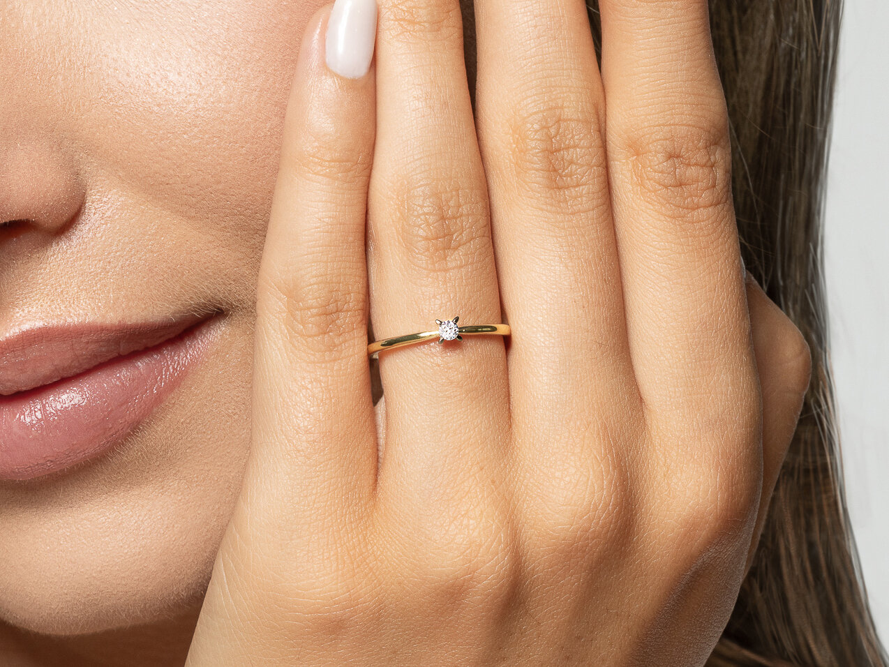 Solitärring Modern Petite in 14K Gelbgold mit Diamant 0,05ct G/SI