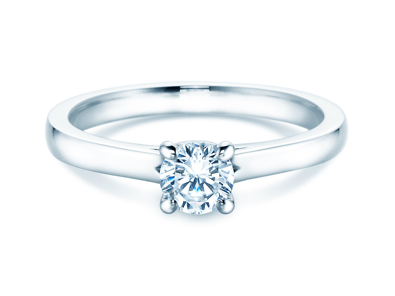 Solitärring Romance mit echtem Diamant und vierer Krappenfassung. Das romantische Highlight des Solitärring Romance ist das in die Fassung eingearbeitete Herz.