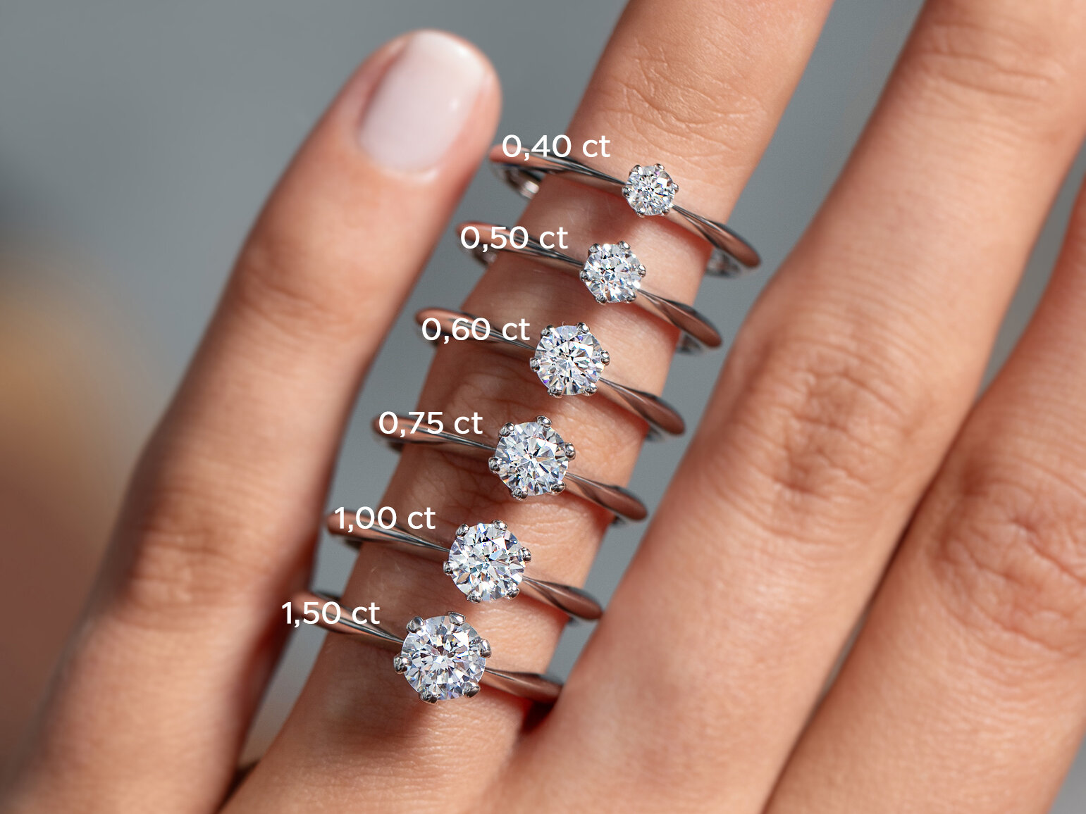 Sind alle anderen Qualitätskriterien gleich, gilt: Je mehr Gewicht ein Diamant (in Karat, Abkürzung: ct.) hat, desto teurer ist er.