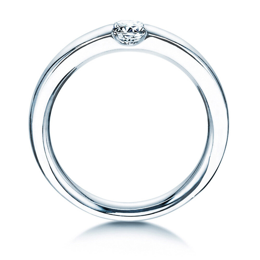 Die ausgewogene und klare Linienführung der Ringschiene schafft Raum für eine außergewöhnliche, offen gestaltete Fassung. Dieser moderne Fassungstyp vereint zwei entscheidende Vorteile in sich: Zum einen wird der intensiv leuchtende Diamant sicher umschlossen, zum anderen fällt durch die großzügig geöffneten Seiten reichlich Licht, sodass der Stein seine besondere Leuchtkraft entfalten kann.