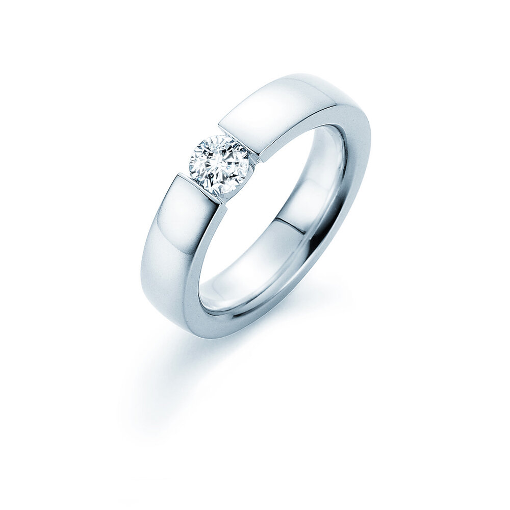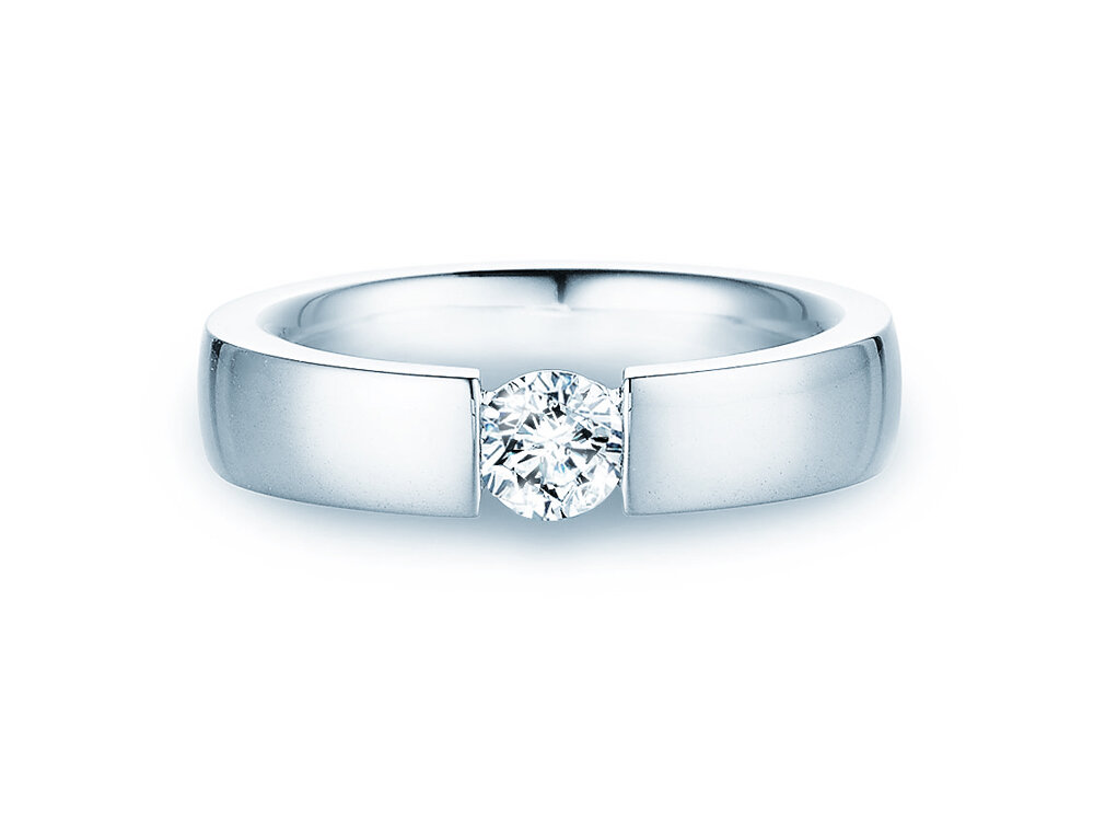 Der Diamant ist in unserem Modell Infinity sicher in die Ringschiene eingespannt. Das helle Silber wirkt modern und lässt den Edelstein erstrahlen. Auch aus edlem Weißgold ist der Spannring Infinity ein Blickfang.