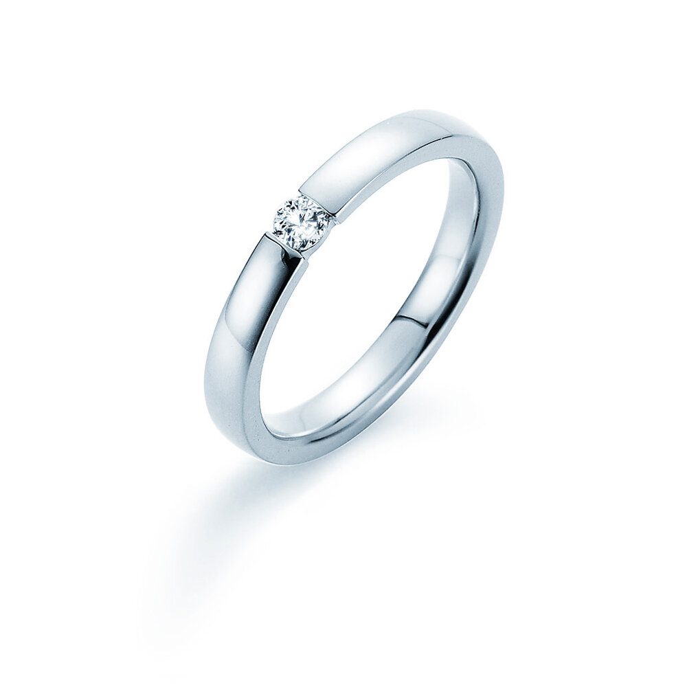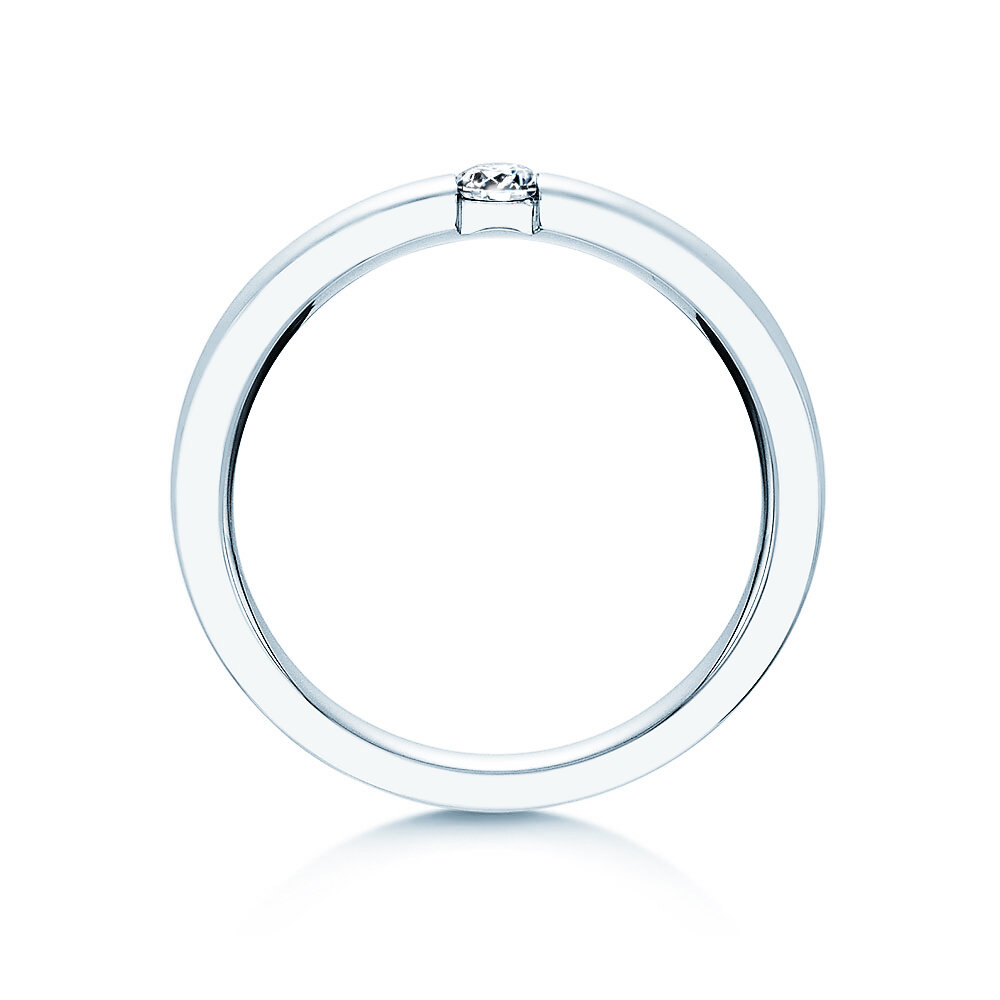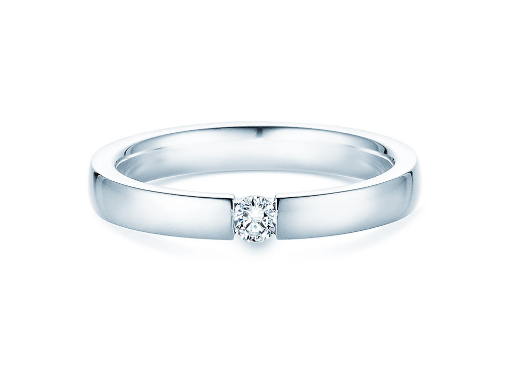 Der Diamant ist in unserem Modell Infinity sicher in die Ringschiene eingespannt. Das helle Silber wirkt modern und lässt den Edelstein erstrahlen. Auch aus edlem Weißgold ist der Spannring Infinity ein Blickfang.
