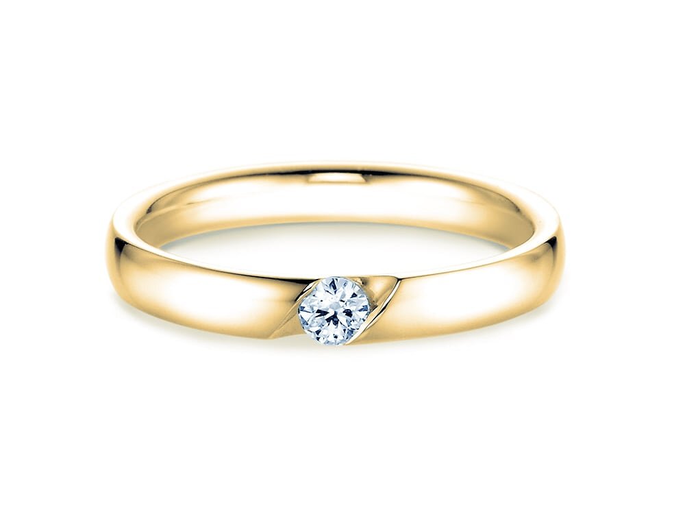 Ein klassischer Spannring, schlicht und elegant. Auf den zweiten Blick offenbart sich seine besondere Raffinesse, die diagonal verlaufende Fassung. Sie gibt dem Diamanten sicheren Halt und sorgt, durch die offen ausgeformten Seiten, für seitlich einfallendes Licht. Der Diamanten beginnt zu strahlen.