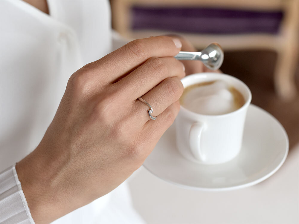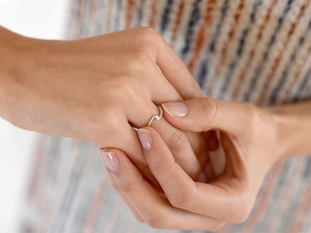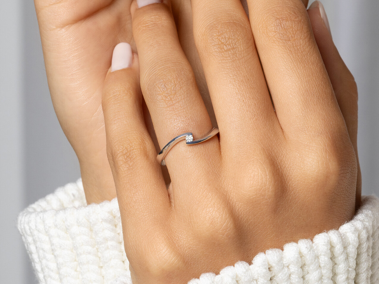 Spannring Twist Petite mit echtem Diamant. Die als Spannring geformte Fassung des Twist Petite umarmt elegant den Diamanten und verleiht ihm sicheren Halt. Aufregend anders und trotzdem tragbar an jedem Tag.