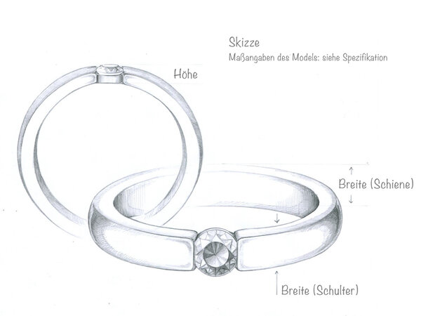 Mit der Ringschablone (PDF) finden Sie die Ringgröße heraus ohne am Ringfinger messen zu müssen. Perfekt, wenn Sie jemanden mit einem Ring überraschen wollen.